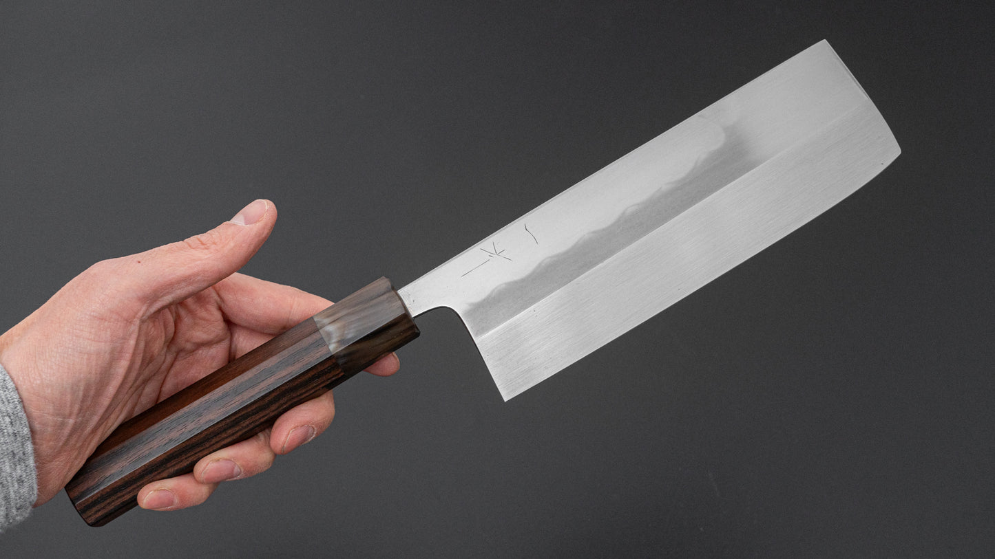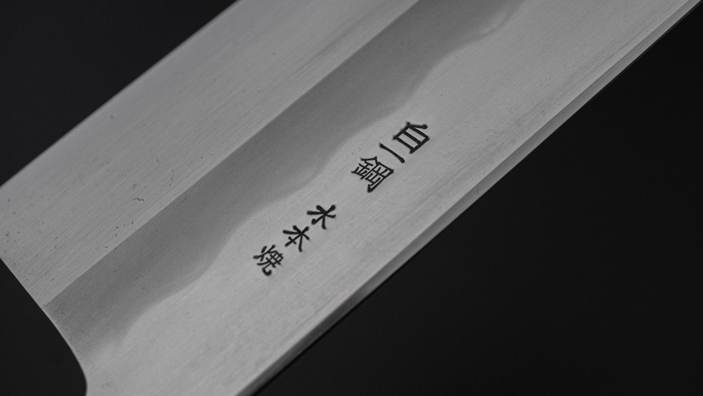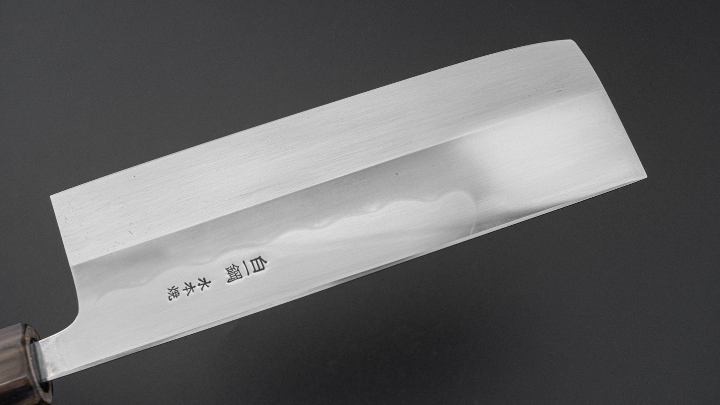 ひとひら 富樫 白一鋼 湾れ紋 水本焼 菜切 太平縞黒檀柄 (#108)