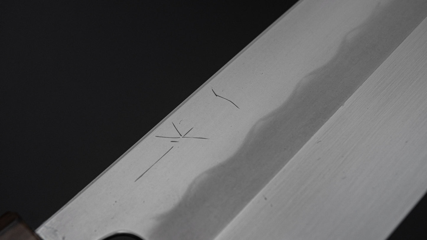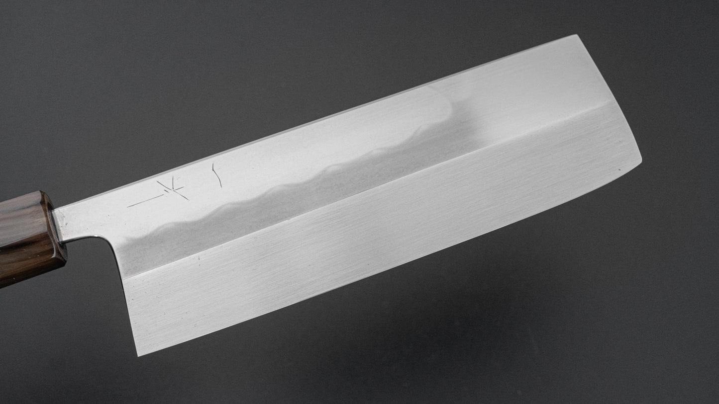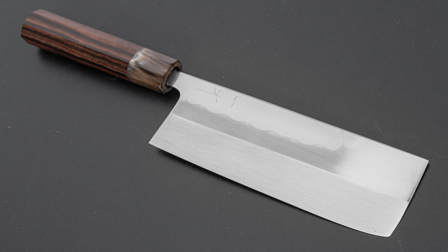 ひとひら 富樫 白一鋼 湾れ紋 水本焼 菜切 太平縞黒檀柄 (#108)