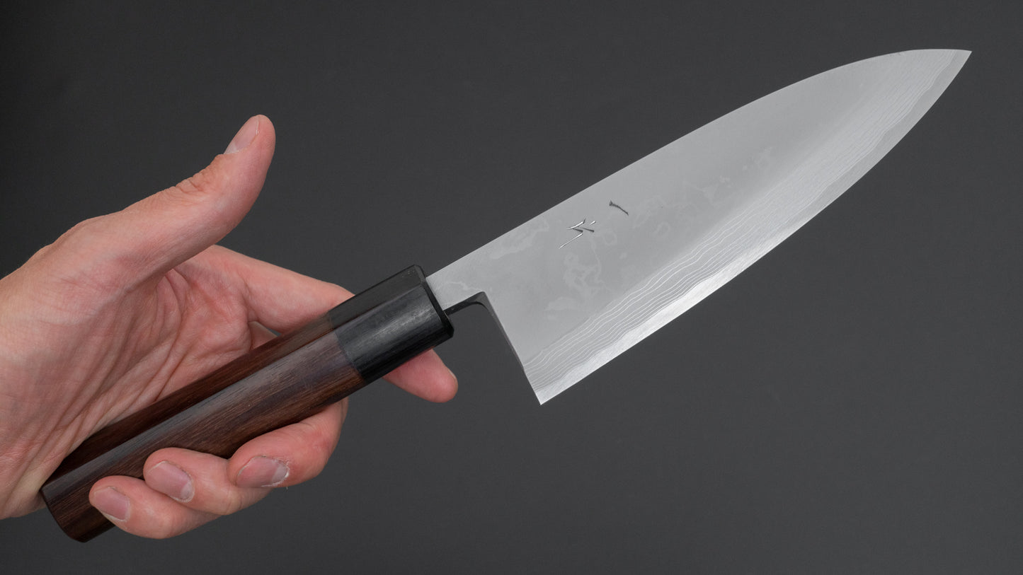 ひとひら 越前 青二鋼 ダマスカス 出刃 165mm 紫檀柄