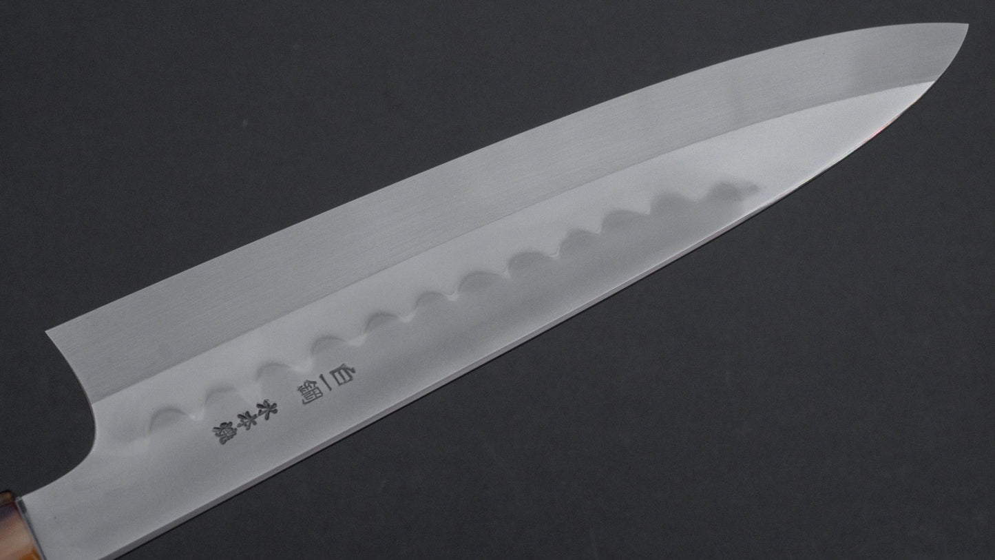 Hitohira Togashi Kambei Hakumon White #1 Mizu Honyaki Gyuto 240mm Ebony Handle (Saya)
