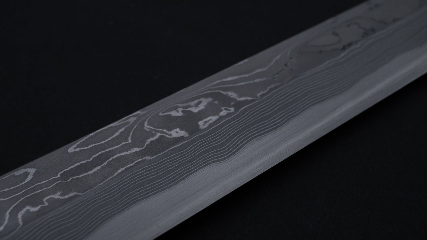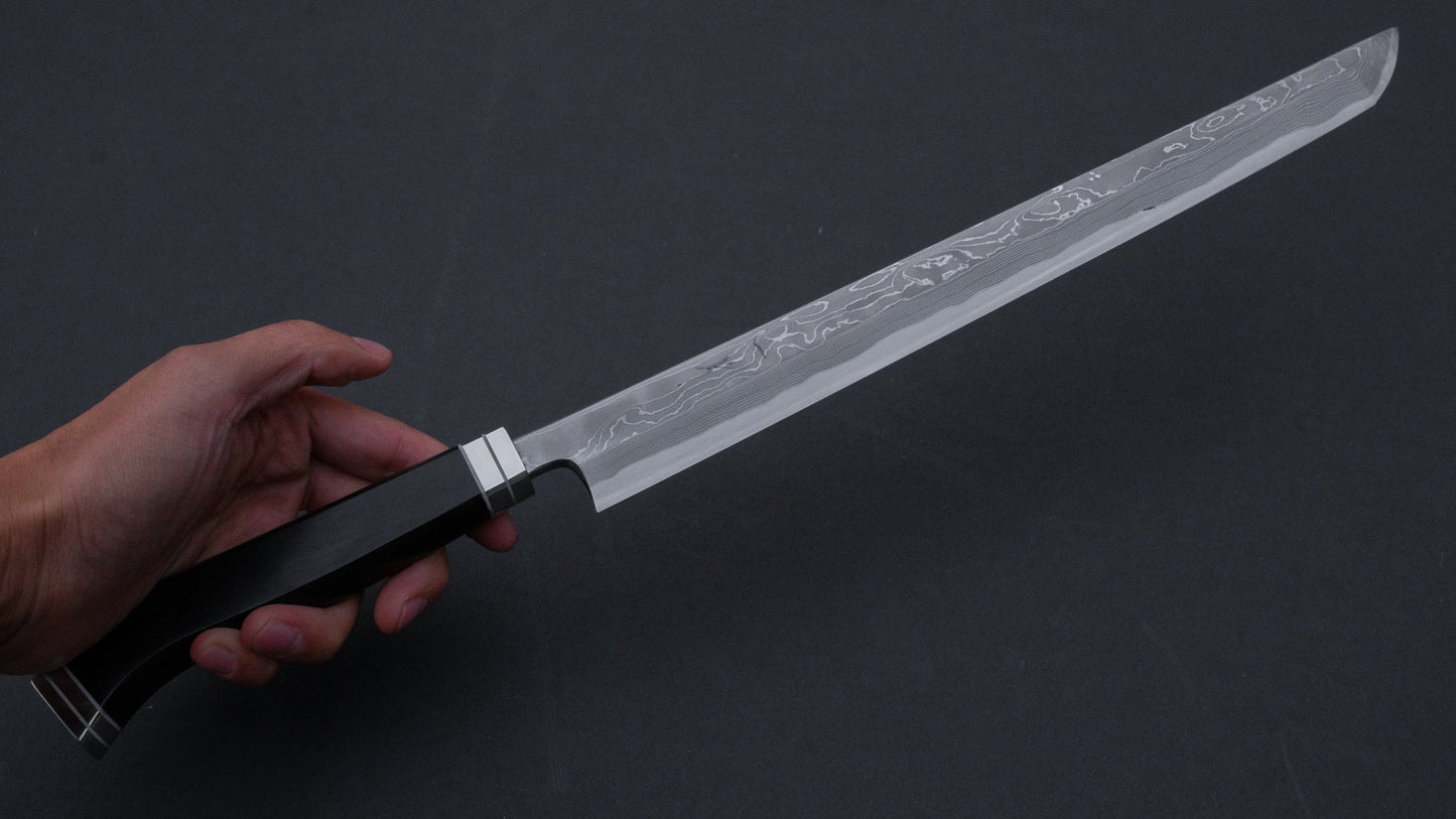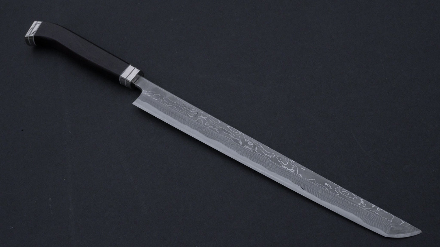 Hitohira Tanaka Mosuke White #1 Damascus Sakimaru Takobiki 300mm Ebony Handle (Fusion Handle/ Aike/ Discounted/ Saya)