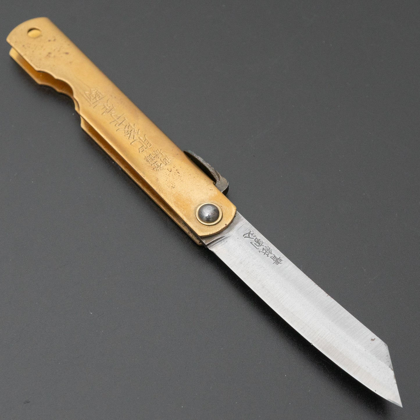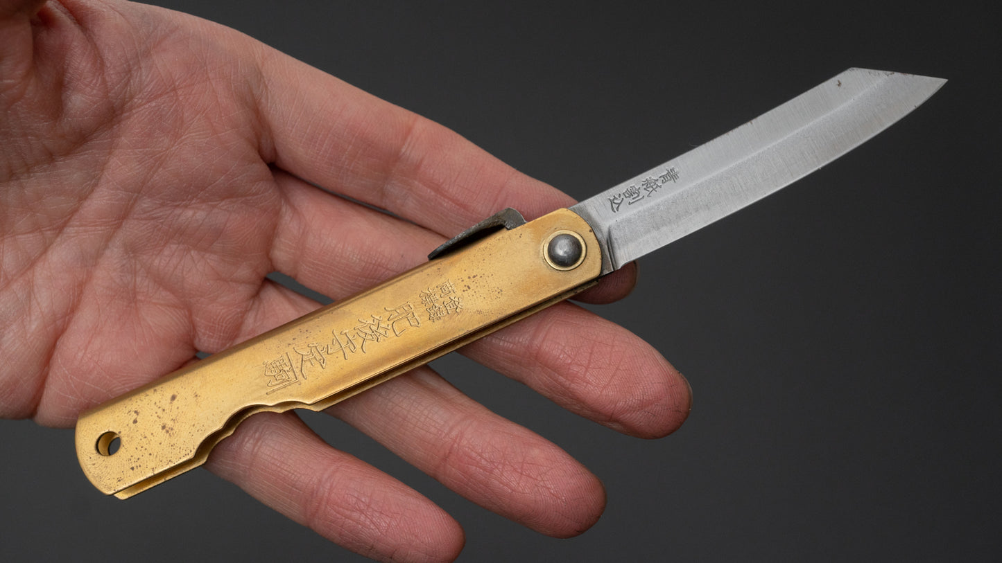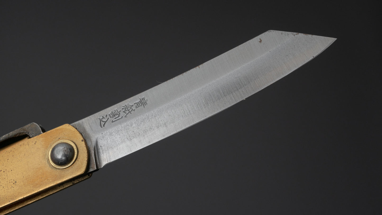 Higonokami Blue Steel Folding Knife Medium Brass Handle