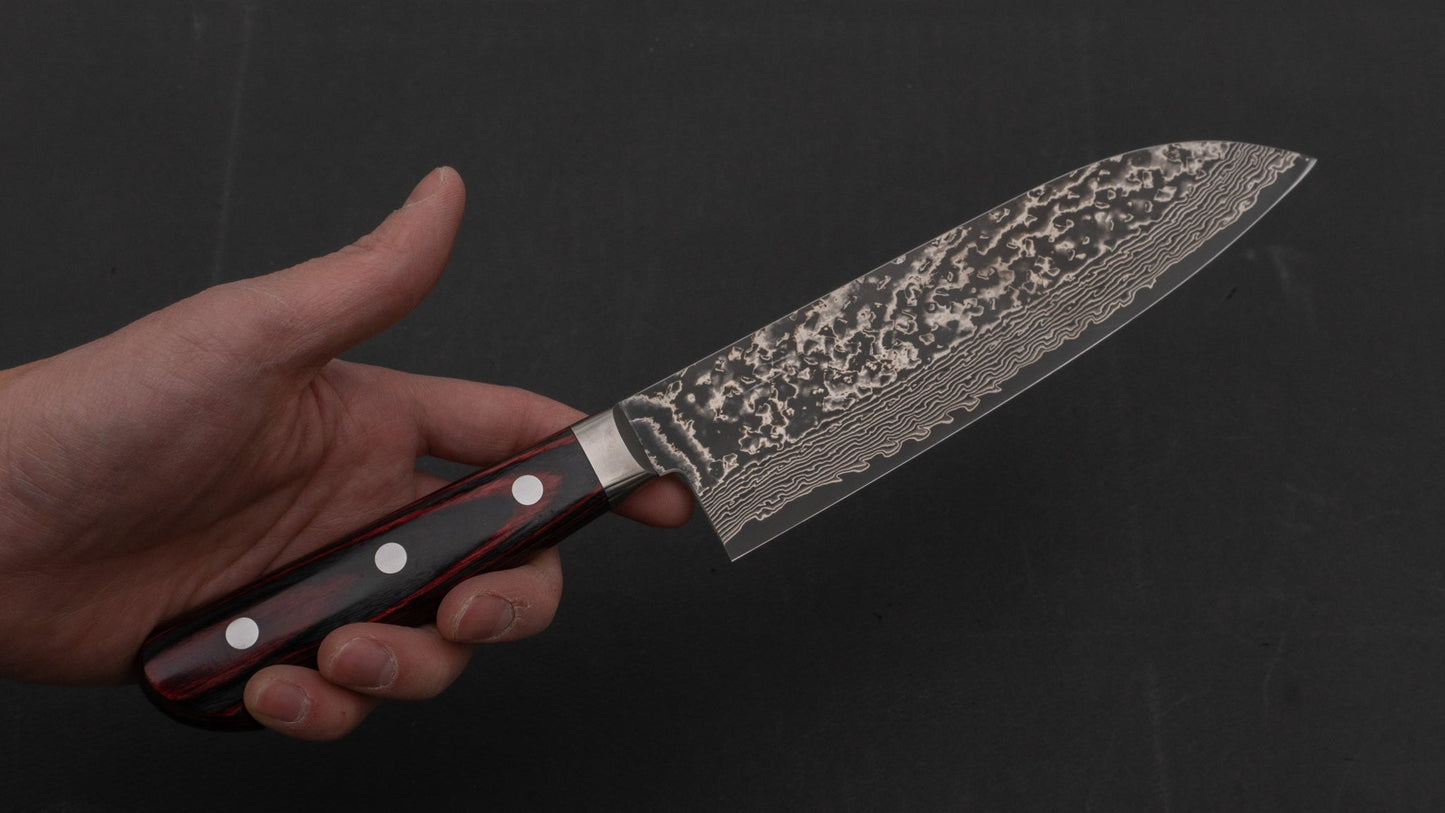 Hitohira VG-10 Nickel Damascus Santoku 180mm Pakka Handle