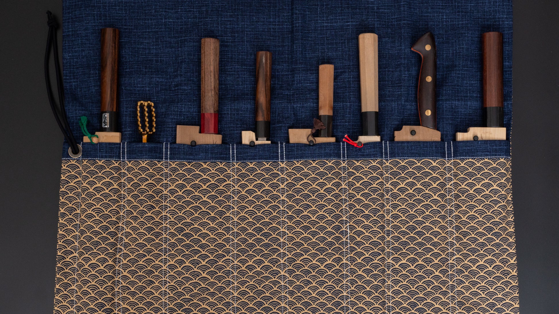 Wagara Knife Rollは、包丁・道具のウェブサイト『ひとひら』の製作している、和風な包丁巻きです。和式の刃物の風合いを壊すことなく、収納することが可能です。