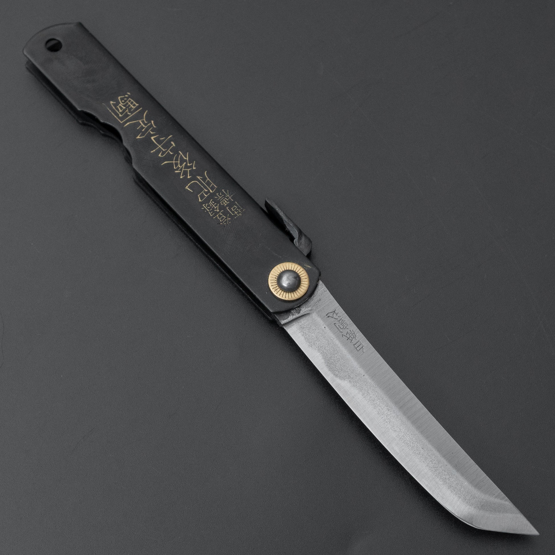 Higonokami White Steel Sakimaru Folding Knife Large Brass Handle (Black)